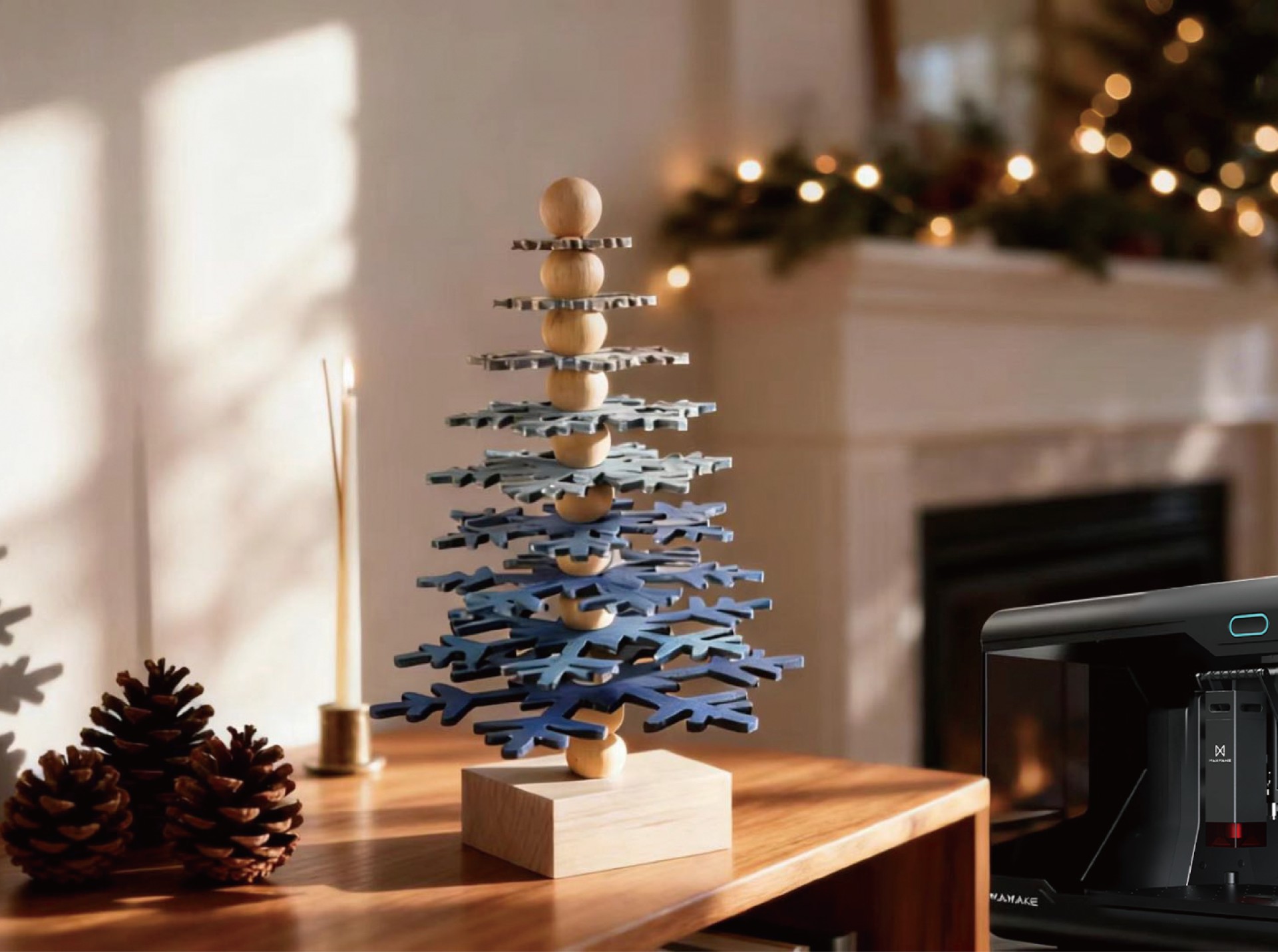 間隔珠:直徑20mm原木圓珠(約12顆,用于分隔雪花層)